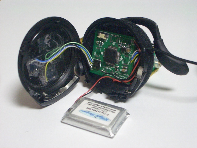 ヘッドフォンに組み込む時は、スイッチ類は基板に実装せず、ヘッドフォンに直接取り付けます。