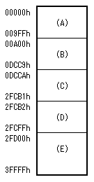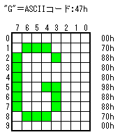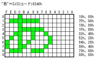 ここで、20dは1文字あたりのバイト数、0DCCAhはフォントビットマップ領域(C)の先頭アドレスです。