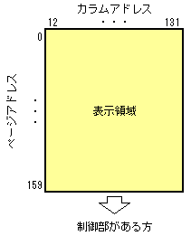 ○表示画面左上隅のピクセルのカラムアドレスは12、ページアドレスは0になる。