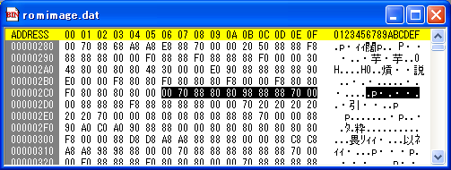 横12ドット×縦10ドットという横長サイズになっていて、小さいながら読みやすいフォントです。これを半角から第2水準まで全部使わせていただきました。