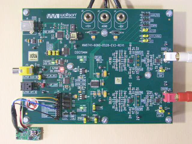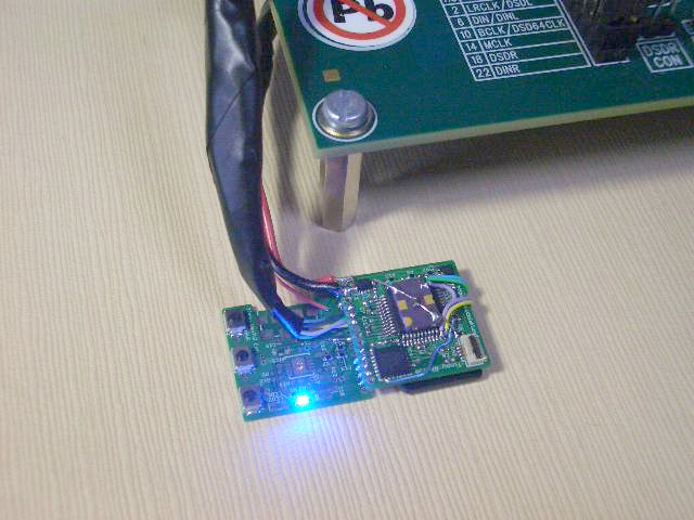 上の写真の通りハードウェアを製作し、Rev7.0のファームウェアに若干手を入れたものを作って書き込んで、ワクワクしながら48KHzサンプルのWAVファイルを再生してみたところ・・・見事に音が出ません。撃沈です。なんとこの時点のファームウェアでは、サンプルレート16KHz程度のデータ転送能力しか無いことがわかりました。MP3やOgg